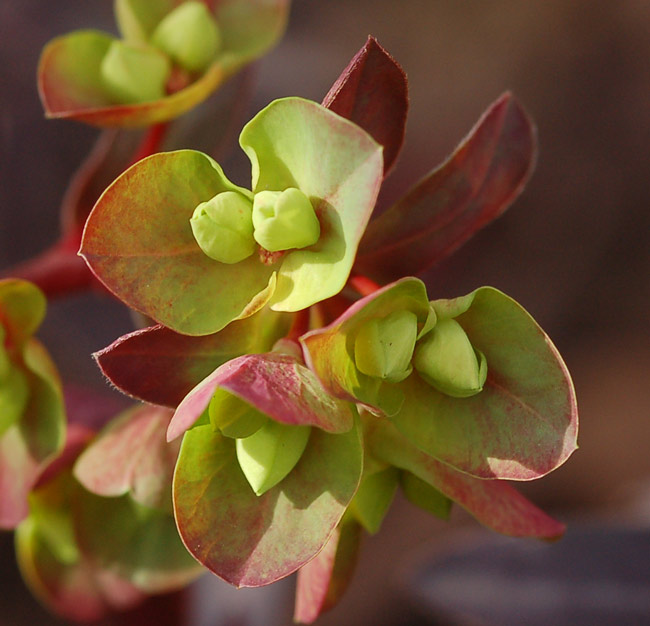 Stimmt, und dazu kann man noch sagen, daß Euphorbia amygdaloides 'Rubra' schön horstig wächst und sich selbst versät, während Euphorbia cyparissias "Fens Ruby' ein übler Wucherer ist.Das müsset E. amygdaloides Rubra (auch Purpurea genannt) sein.