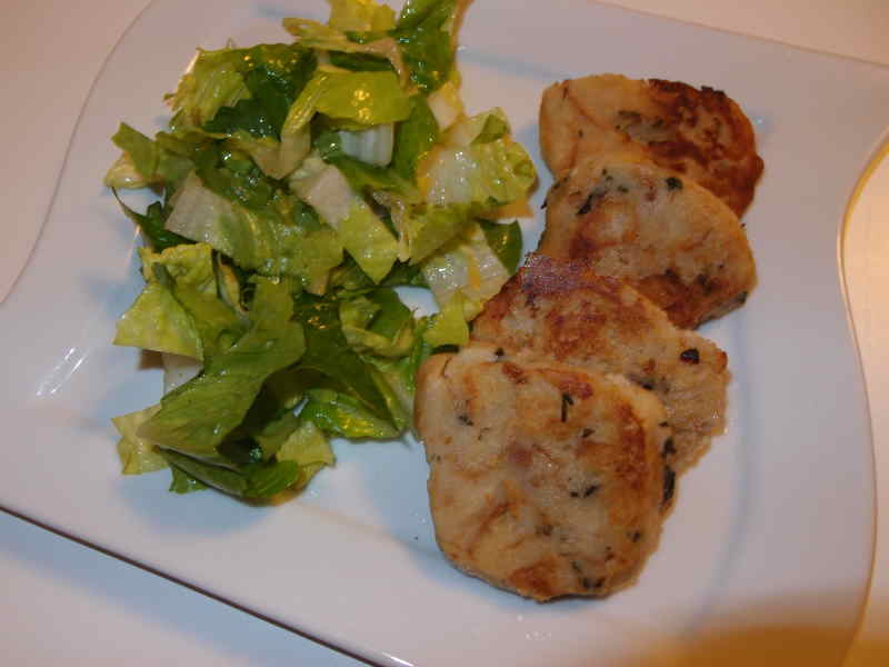 und heute die restlichen semmelknödel in der pfanne gebraten und salat dazu.