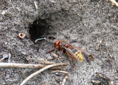 Einige kennen sie ja nun schon vom Treffen - unsere Kompost-Hornisse. ;) Sie hat sich ausgerechnet eine verlassene Mäusewohnung als Domizil ausgesucht. Eigentlich sollte der Kompost längst gesiebt werden, das muss nun bis zum Herbst warten.