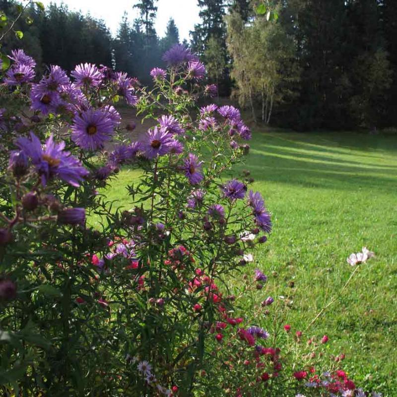 In dem Beet am Baum stehen hohe Astern und Phlox, am Rand Echinops und hohe Nelken, das lebt auch fast von alleine. Als das Foto gemacht wurde, stand allerdings alles schon zu dicht und mußte umgepflanzt werden, inzwischen ist es doppelt so groß. Wurde heuer kein einziges Mal gegossen. Den Rand besorgen meist die Wühlmäuse