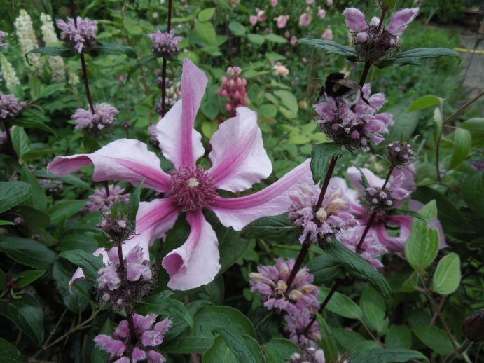 Clematis "Saphyra Double Rose" und Phlomis Tuberosa "Amazone"