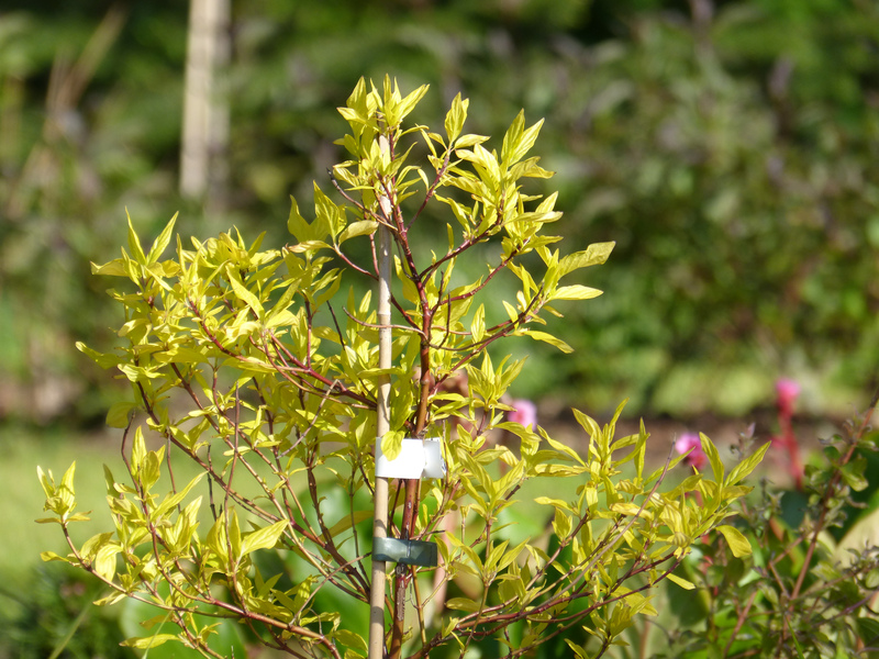 Lohnenswert ist vielleicht auch Cornus sericea 'Kelsey's Gold', der trumpft immerhin noch mit leuchtendem Laub. Dieses Jahr haben sich die noch jungen Sträucher als windbruchanfällig erwiesen, was aber vielleicht auch durch die Veredelung auf einen kleinen Stamm begünstigt wurde (in anderer Form habe ich die Sorte nicht gefunden).