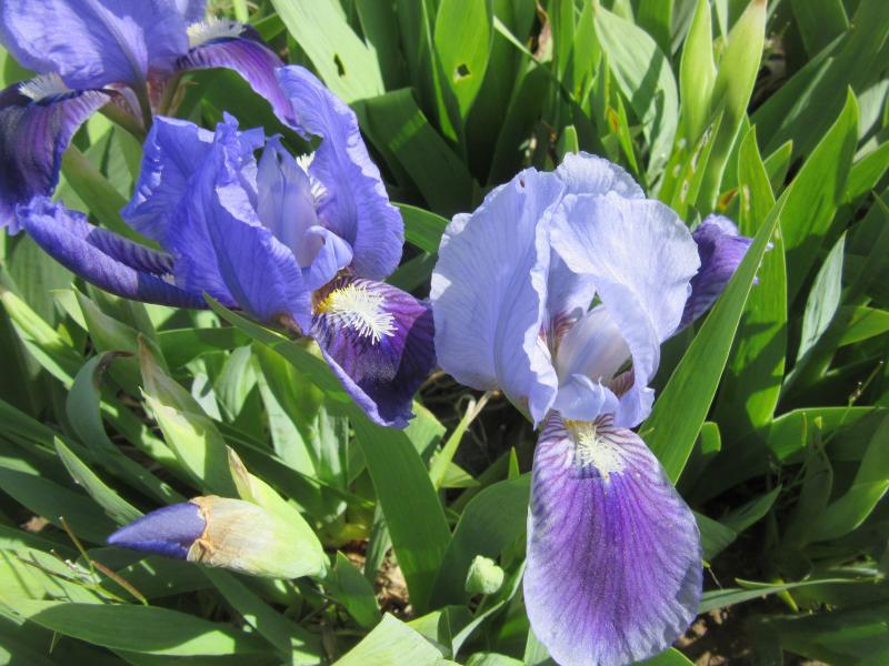 Eine Fundiris, wahrscheinlich `Blauer Zweiklang´ (Herta van Nes 1966), was ich aber noch näher vergleichen will, deutlich sind zwei verschiedene Blütenstadien. Was ich von der Sorte selbst auch so kenne. Ob die Züchterin möglicherweise dies bei der Taufe meinte... Jedenfalls eine der Wenigen die gerade wollen. Und die Einzige die mich heute zum Fotografieren animierte.