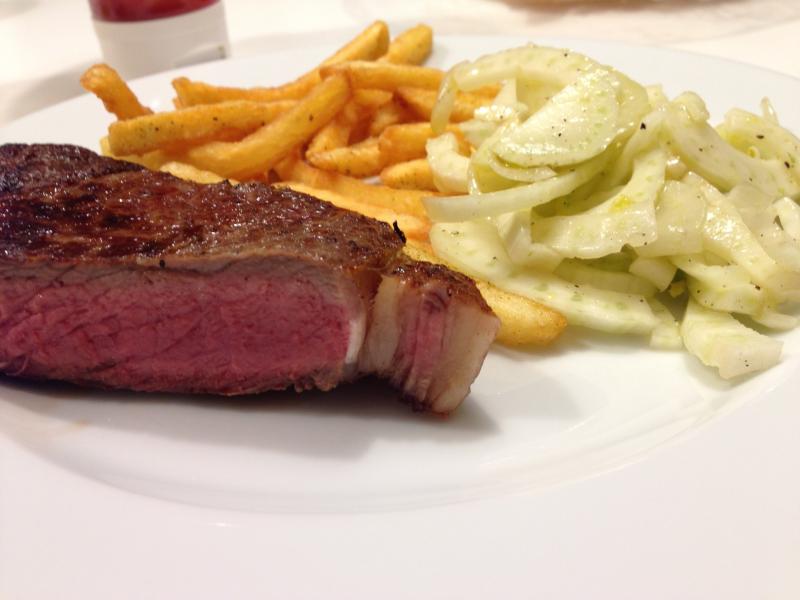 Hier gerade steak mit Pommes und fenchelsalat
