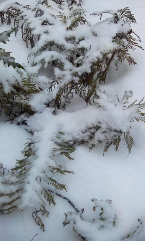 Weil grad so schön Schnee liegt, Polystichum 'Green Lance' fast versteckt.