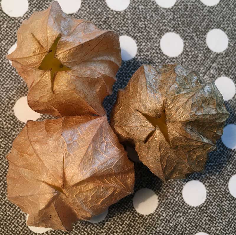 Vor vielleicht drei Wochen habe ich begonnen, die vertrocknenden Lampions meiner peruvianas auf dem Balkon mit der Schere abzuknipsen. Eigentlich wollte ich sie an der Pflanze lassen, bis die Frucht rein orange-gelb geworden ist und jeden Grünschimmer verloren hat, aber die Wespen kennen keine Gnade.