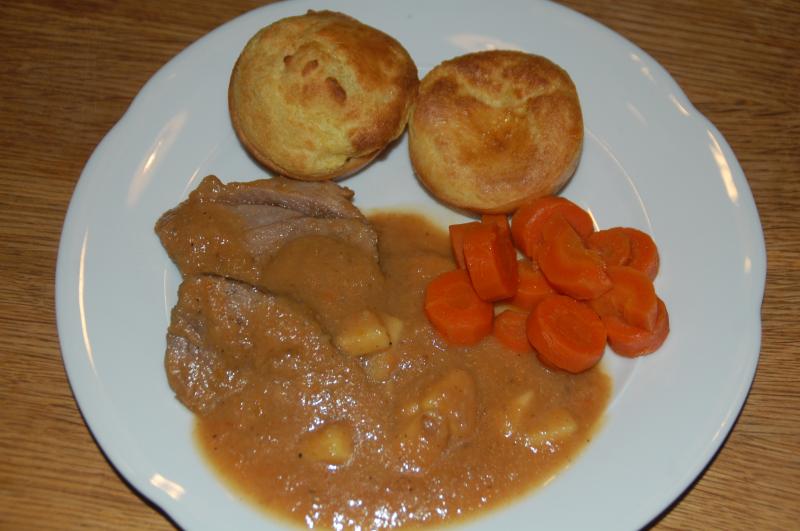 Heute war GG mit Kochen dran. Es gab Schafkeule in apfeliger Sauce mit Möhrchen und Yorkshire Pudding. Die Puddingse hatten wir zum ersten Mal probiert und fanden sie ganz gut. Waren nur zu wenig :(. Gibt es nun wohl öfter ;D.