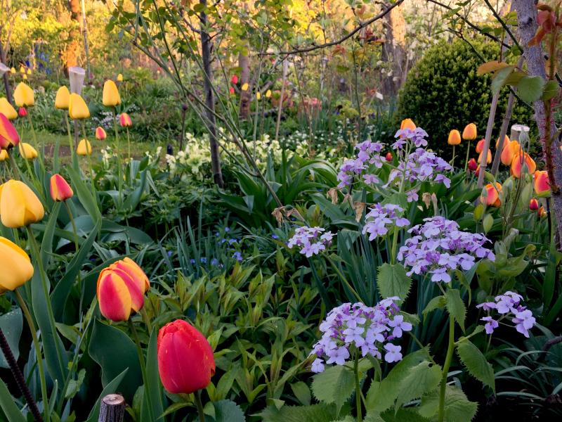 Hier stehen die Geraniümmer in den Startlöchern. G. robertianum blüht schon länger. G. renardii, renardii 'Philippe Vapelle' und G. sanguineum 'Apfelblüte' haben gerade angefangen. Zusammen mit den letzten Tulpen hatte ich das noch nie. Die Blühfolgen sind alle etwas durcheinander dieses Jahr.