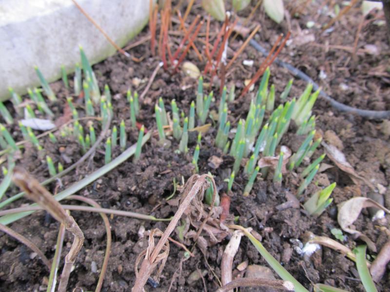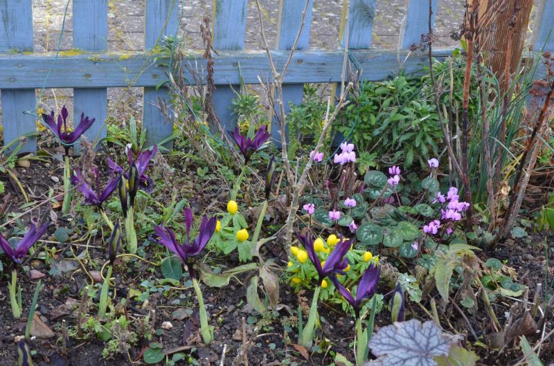 Winterlinge, Cyclamen und Schneeglückchen, Hamamelis, Winterschneeball, Haselnuss und viele, viele Spitzen von Narzissen und Tulpen. Habe heute früh mal in Ruhe geschaut - der Frühling in jeder Ecke - Auweia, und das Anfang Februar, das dicke Ende kommt sicher erst noch...