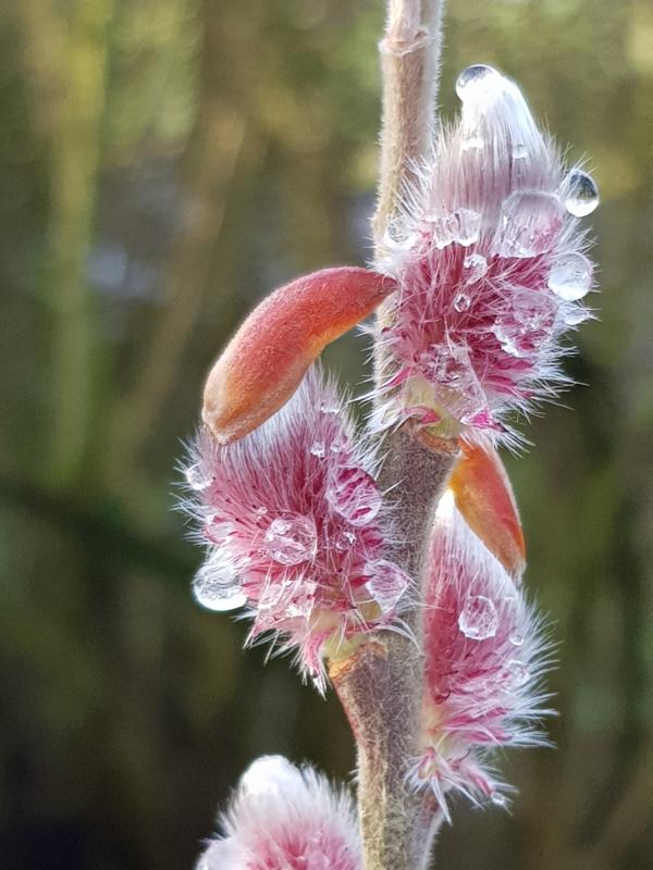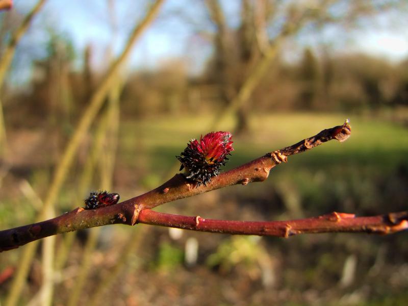 Die schwarzblütige Weide zeigt ganz vereinzelte Blütenansätze noch mit rot.