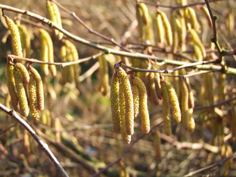 Hier ist noch nicht so furchtbar viel zu sehen. Die Haselsträucher sind in Blüte