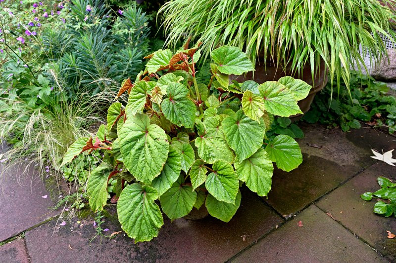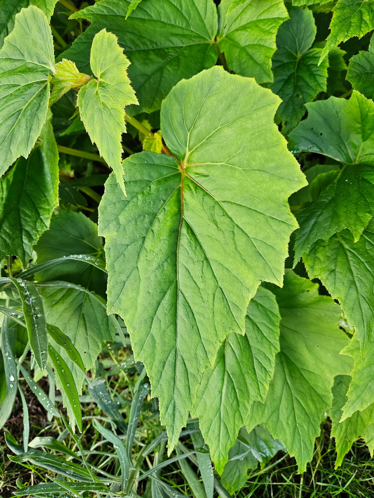 Ich habe ja nur Begonia grandis in weiß und rosa. Einige Weiße habe ich zur Sicherung in Töpfen und ich muss sagen, im Topf sehen sie besser aus als ausgepflanzt. Solch eine üppige Pflanze ist im Freiland nicht zu haben, dort brauchen sie mehr Platz.