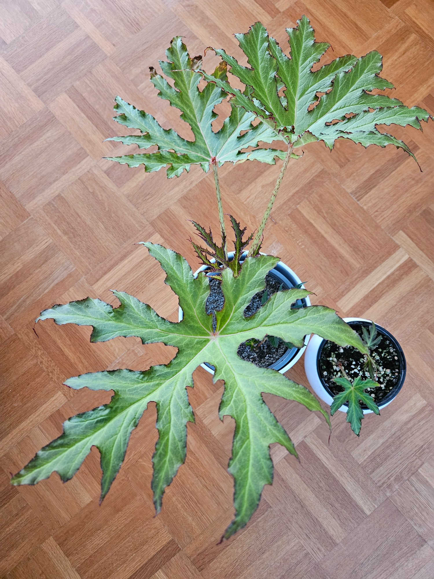 Die Bulbillen woraus die entstanden sind kommen von Begonia W/O-7059....aber die hat im vergleich sehr kleine Blätter.