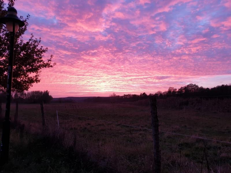 Umgebung Eindhoven, NL: hier klarer Himmel aber in der südliche Ferne Wolken bei 13.7 Grad. Heute Nachmittag soll es Regen geben.