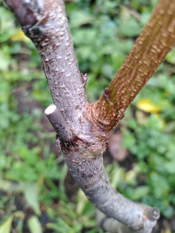 Wenn sich eine Druckzwiesel gebildet hat, also eine klare Trennschicht zwischen Ast und Haupttrieb sichtbar ist, ist die Sache klar.