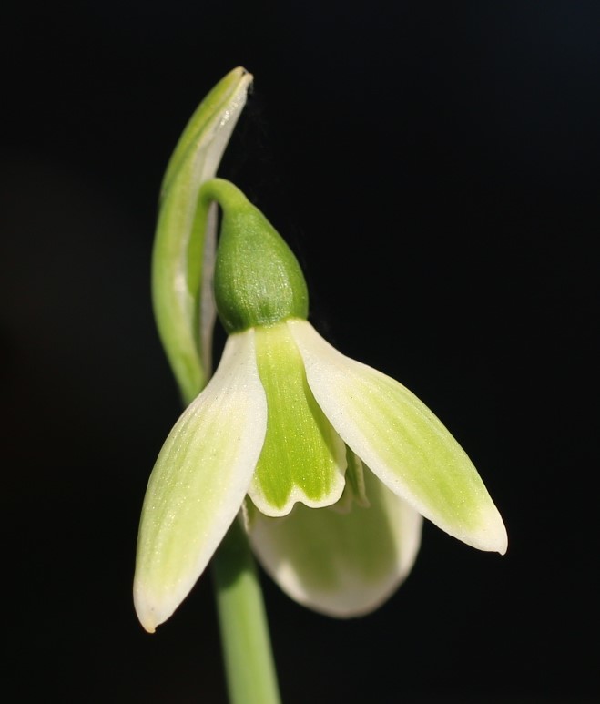 Galanthus elwesii 'York Minster' beginnt zu blühen.