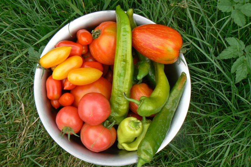 Erdkirschen, Tomaten, Melanzani, Gurken (+4 die wir den Nachbarn geschenkt haben), Zucchini, Paprika, Chillis und eine Tomatillo. :)