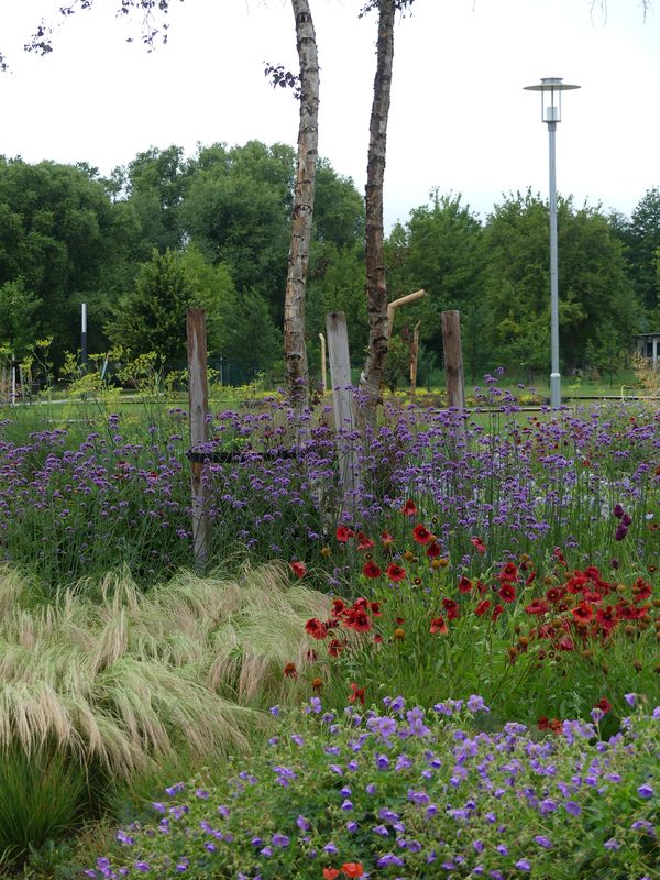 Mein Fazit vorweg: Nett anzusehen und für einen Nachmittag ein schöner Zeitvertreib, aber ansonsten hat es mir wieder bestätigt, dass Gartenschauen nichts für mich sind. Viel für den optischen Effekt (viele Staudenbeete waren mir viel zu sehr mit Einjährigen aus dem Balkonsortiment durchsetzt), für mich gab es zuviel Nippes und deplatzierte Architektur und an einigen Stellen fragte ich mich auch "was will uns der Dichter damit sagen..?". Insgesamt ist aber sicher für jeden Geschmack was dabei.