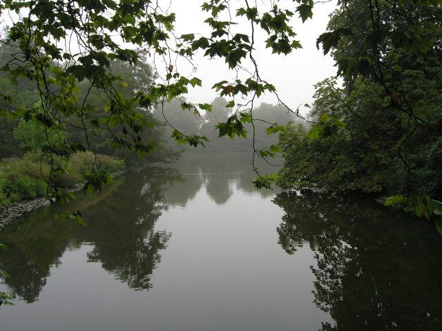Verkehrte Welt in diesem August. Ich stehe auf einer Brücke über den Teich im boga, auf der einen Seite bietet sich mir dieses herbstliche Bild