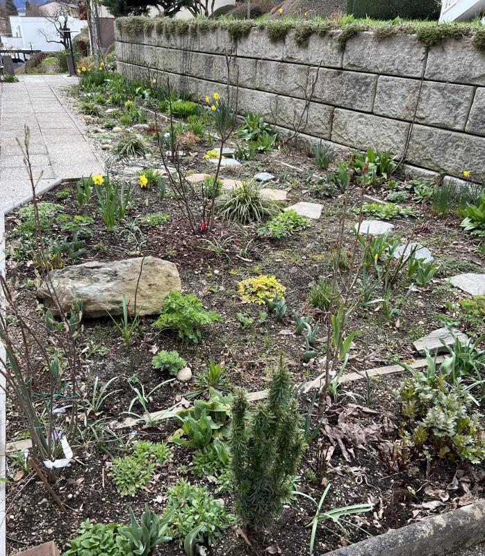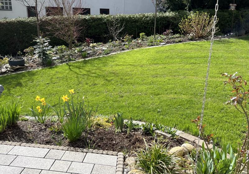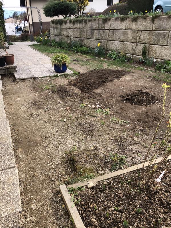 Da wart ihr ja auch sehr fleißig. Schön sieht es aus! Den Kanaldeckel (oder was das ist) habt ihr gut kaschiert, fällt gar nicht mehr auf. Nun werden die folgenden Bilder im Jahresverlauf interessant 8) :) Den Teich hinten habt ihr ja schon länger, oder? Hast du die neue Terrasse hinten samt Umpflanzung auch schon näher gezeigt?