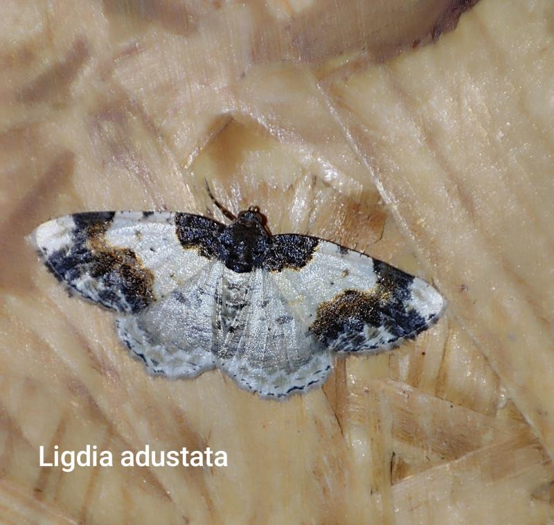Hübsch schwarzweiß der Pfaffenhütchen-Harlekin / Ligdia adustata.