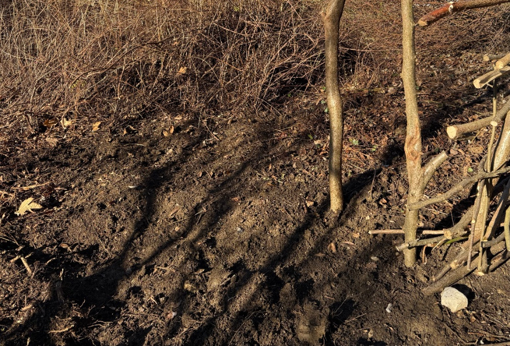 Ich habe heute weiteren Purpurbeeren Strächer gerodet. Zwei große Sträucher ganz runter geschnitten. Die andere waren schon bodeneben abgeschnitten. Insgesamt habe ich 8 Wurzelstöcke ausgebuddelt. Paar kleinere und größere. Sind noch zwei übrig. Eine Pfeil für den Zaun aufgestellt. Der Boden ist nur zwei cm tief eingefroren, aber für den Root Slayer ist es kein Problem, geht rein ein in Butter. Dank Frost ist es auch nicht so matschig. Dennoch waren meine Schuhe sehr schwer und musste von großen Klumpen befreit werden