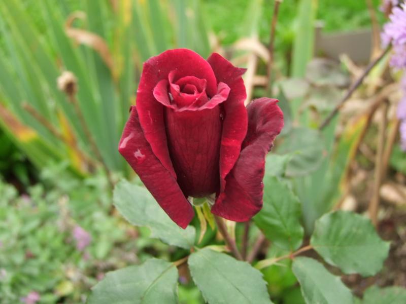 Papa Meilland im Knospenstadium.Man sieht schon die edle Form der Blüte.