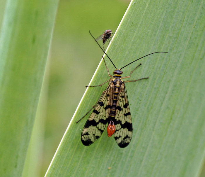 Liebe Christa, du hast den Beruf verfehlt. Du hättest Insektenforscherin werden sollen. Danke für die Bestimmungdas ist eine Gemeine Skorpionsfliege (Panorpa communis). Für mich eines der schönsten Insekten.