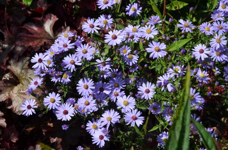 Aster 'Small Ness' ist beinahe durch, 'Rosa Raureif' fängt hingegen erst an.