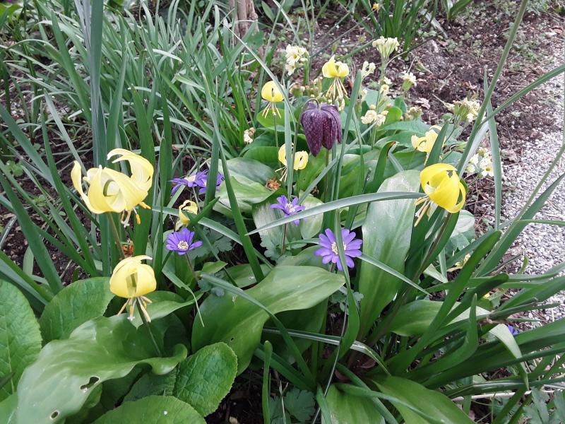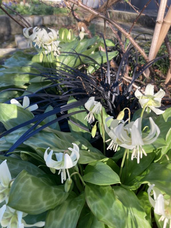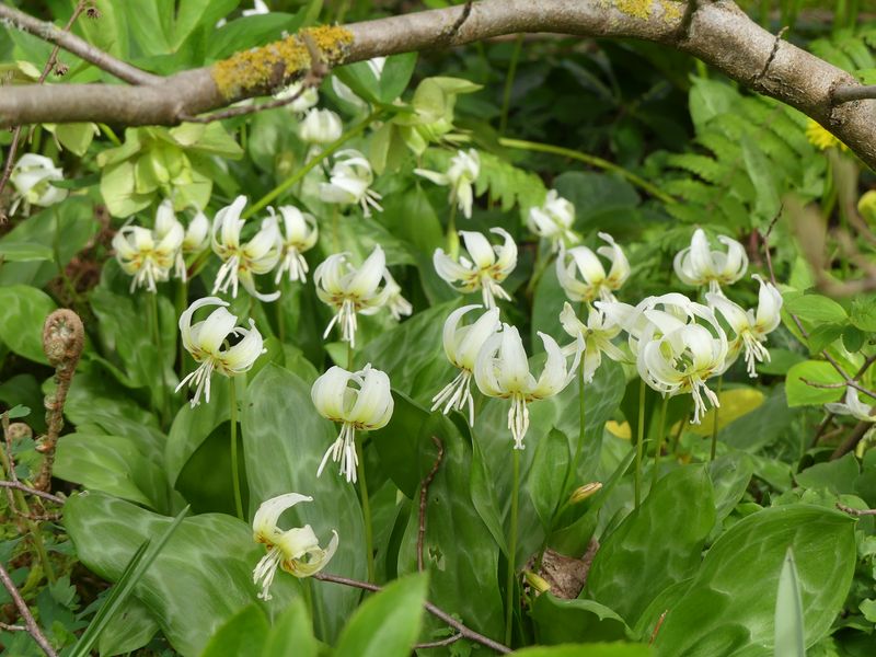 White Beauty war vor drei Jahren mein insgesamt erster Versuch mit Erythronium. Ich hatte zunächst halbherzig-misstrauisch mal nur 3 Zwiebeln/Knollen gesetzt. Als die sich erstaunlich gut machten, habe ich dann an mehreren Stellen Versuche unternommen, und es scheint ihnen hier zu gefallen, sie vermehren sich stetig - wenn auch langsam.