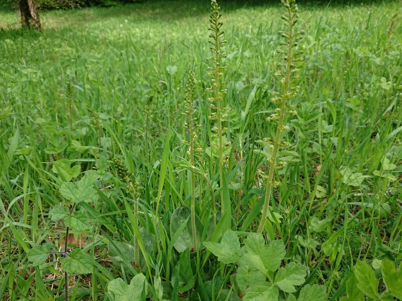 Da hat das Zweiblatt keine Chance! Es ist ja auch recht unauffällig, selbst wenn es wie hier in großen Beständen auftritt. Auffällig waren die mit Pollinien beklebten Fliegen - leider habe ich keine im Bild festhalten können.