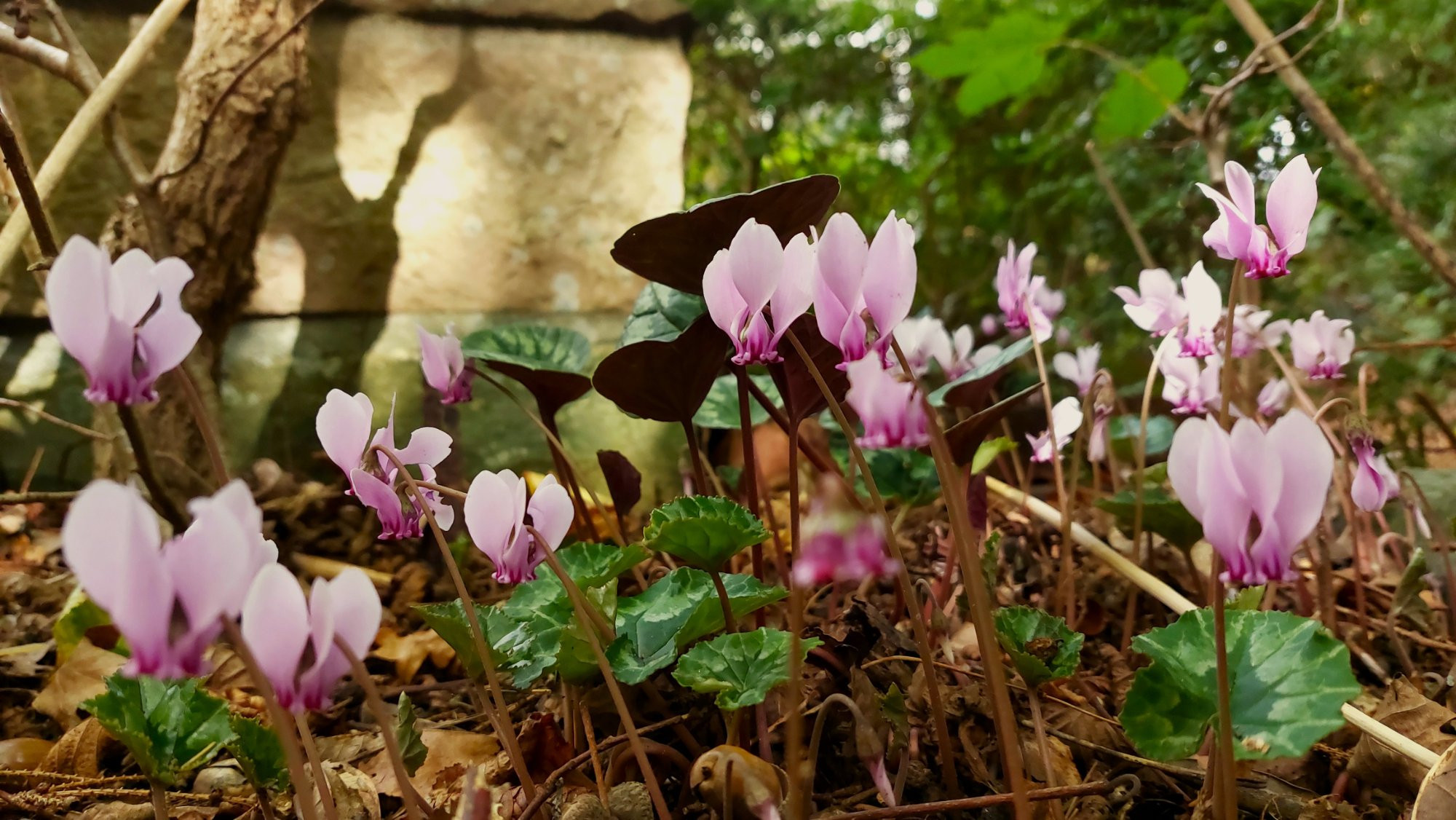 Diverse Herbst-Alpenveilchen im Schattenbeet.