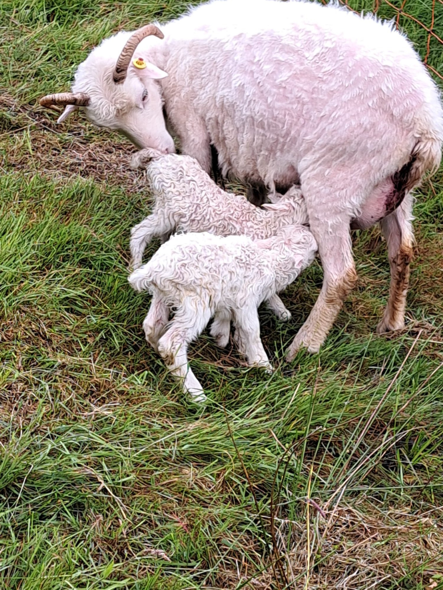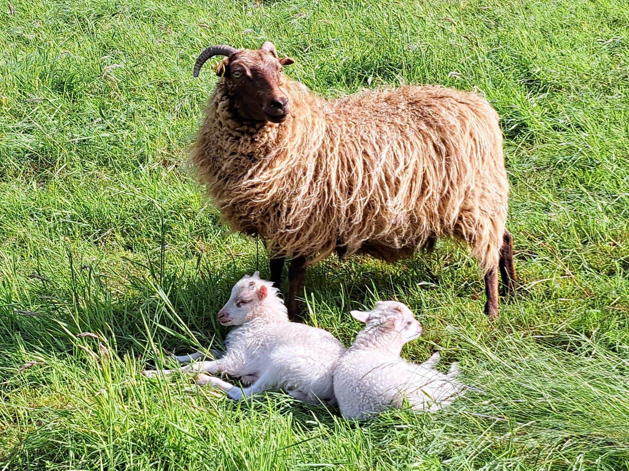 Quendula schert aufrecht und ich im sitzen. Beides ist möglich. Dass mein Schaf määääht, liegt daran, dass sie ihr Lamm ruft und ihr Lamm nach ihr.