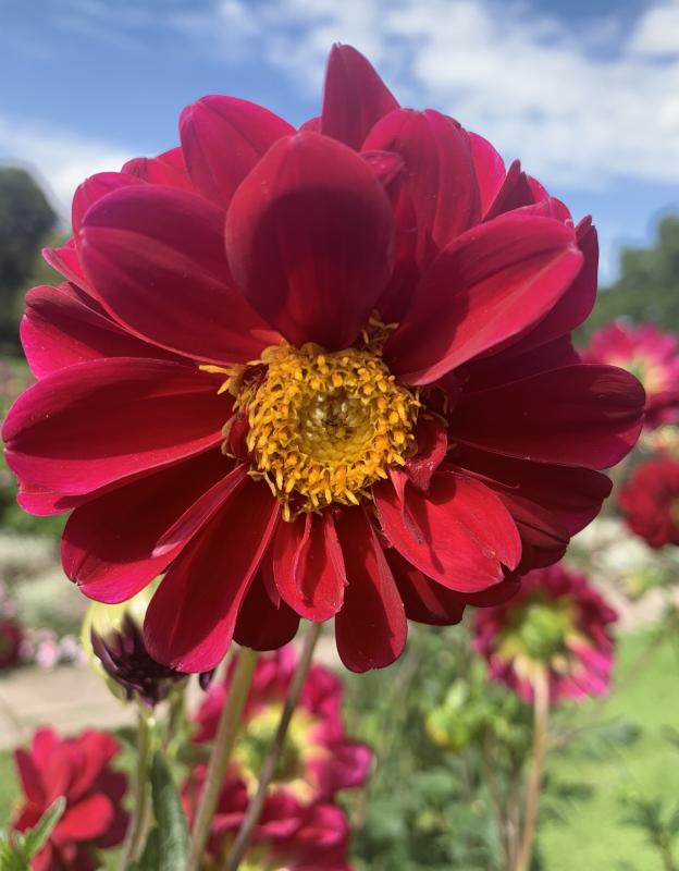 Sie ist gut einen Meter hoch, und es handelt sich wohl um die Seerosendahlie 'Brigitte Epple' (1). Am Sonntag war ich nochmals im Britzer Garten. Nun war das Feuerwerk komplett. Ein paar Fotos zeige ich anschließend.