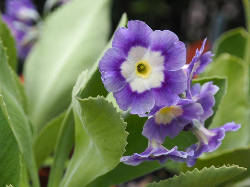 die habe ich mir aus einem etwas besser sortierten Gartencenter mitgebracht. Einfach, weil ich Primula Auricula mal in unserem Garten erproben wollte. Die wurden dort als Garten-Aurikel gekennzeichnet und haben relativ großes Laub. Gerade strahlen sie so richtig vor unserem Mäuerchen im Vorgarten. Ich bin gespannt, wie robust sie sind und ob sie im kommenden Jahr wieder blühen. Gelesen habe ich auch schon ein bisschen was über ihre Ansprüche.