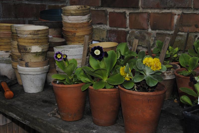 meine Aurikeln sind dieses Jahr endlich mal gut ueber den Winter gekommen, drei sind schon voll erblueht :D rechts Schicchi, die beiden linken haben ihr Schild verloren, dass muss ich erst noch rekonstruieren, was das ist.
