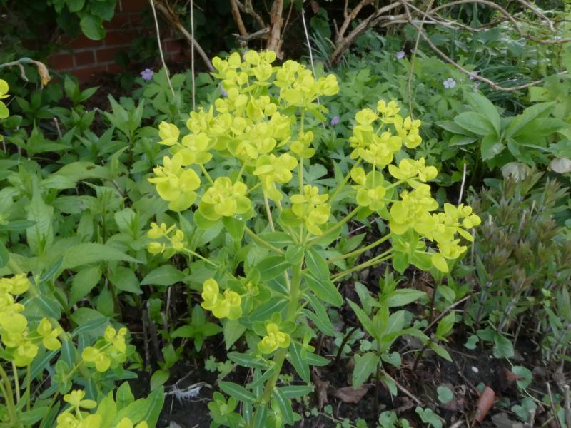 Euphorbia palustris 'Teichlaterne' am trockenen, im Sommer schattigen Standort. Das kommt mir sehr früh vor, wie so vieles in diesem Jahr. Im vergangenen Jahr habe ich die Art in einem ehemaligen Elbe-Altwasser Anfang Juni in voller Blüte gesehen. Aber gut, nahe der Aue und sehr nass erwärmt sich der Boden auch viel langsamer.