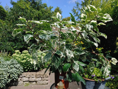 Ob gestaucht oder nicht zeigt sich in den nächsten Wochen. Vielleicht sollen ja die panaschierten Blätter den Blütenflor ersetzen?