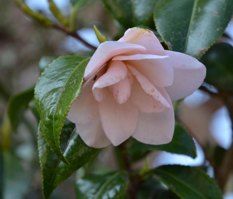 Die 3m hohe Camellia japonica Hagoromo ist nach 6 Tagen Abwesenheit voll aufgeblüht