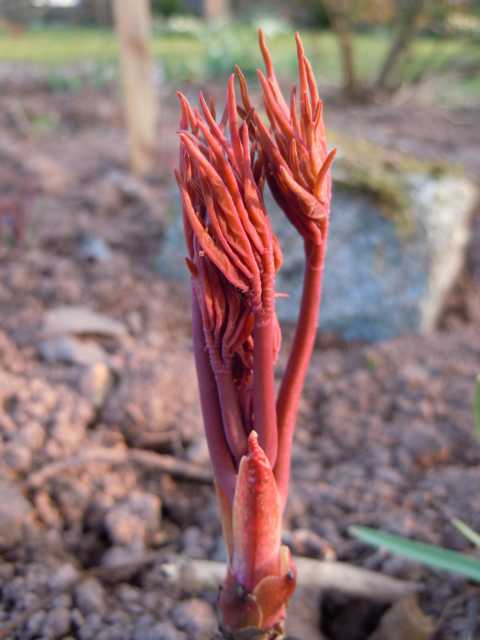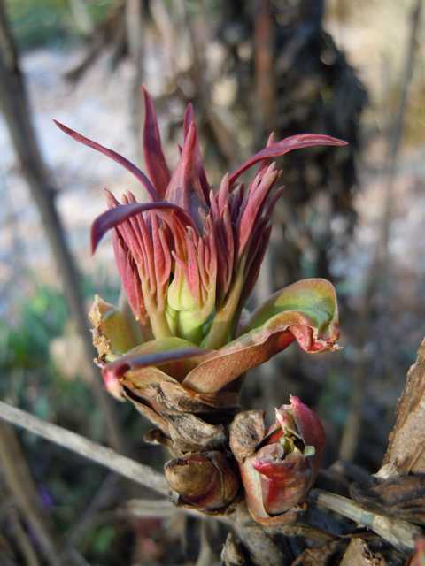 P. ostii forma vulgaris, sprich "Feng Dan Bai" mit dem sehr eleganten Austrieb.