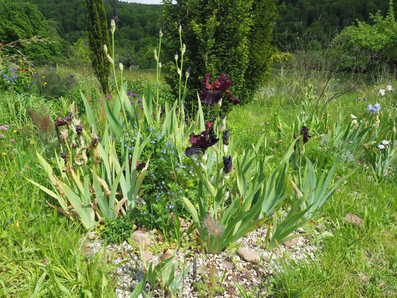 am 28. Mai ging es bei den Iris weiter, Sable Night vor Pink Hawaiian Coral.