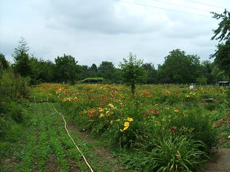 Ich bin schon durch einige Taglilienfelder gestiefelt - mit den jeweiligen Besitzern, die mir dann jeweils zeigen mußten, wo etwas Besonderes blüht, weil man es in der Fülle einfach nicht mehr wahrnimmt. Daher bin ich geheilt und möchte keinesfalls etwas in dieser Größe und mit diesen Mengen an unterschiedlichen Sorten. Aber ich finde es richtig bewundernswert, daß andere solche Mengen unter Kontrolle behalten.Ich hätte schon mit 100 m² Sämlingsfläche Freude.Ich habe tatsächlich von Taglilienfeldern geträumt.