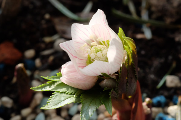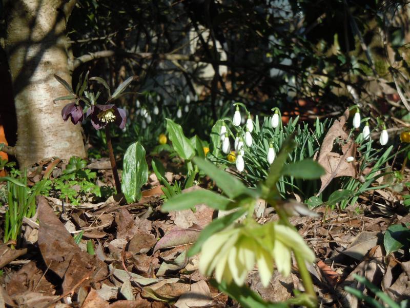 Hier blüht seit Weihnachten nun schon als erste Art Helleborus liguricus, die in den letzten milden Wintern auch den leichten Frost gut verkraftet haben und sogar Samen ansetzen.