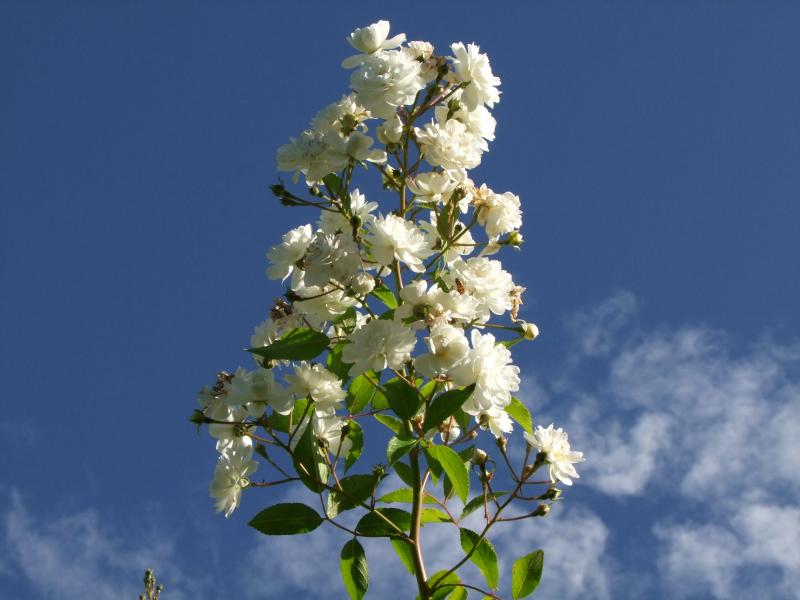 Und natürlich streckt sich 'Guirlande d'Amour' ihre neuen Blütentriebe in den blauen Herbsthimmel. :D