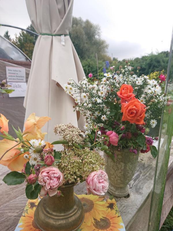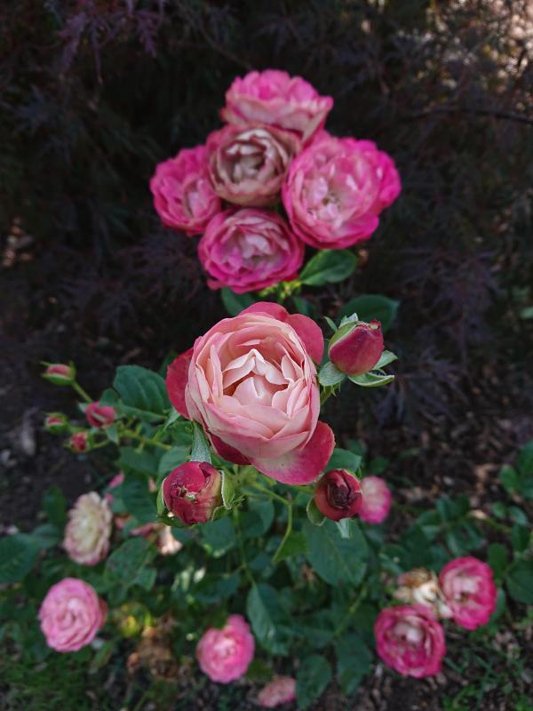 Diesen Herbst fallen mir die Kletterrosen als besonders willig nachblühend auf. Selbst an einigen sommerblühenden Ramblern ist das zu beobachten. Hier aber die öfterblühende 'Jasmina',die eigentlich nie ganz ohne Blüten ist.