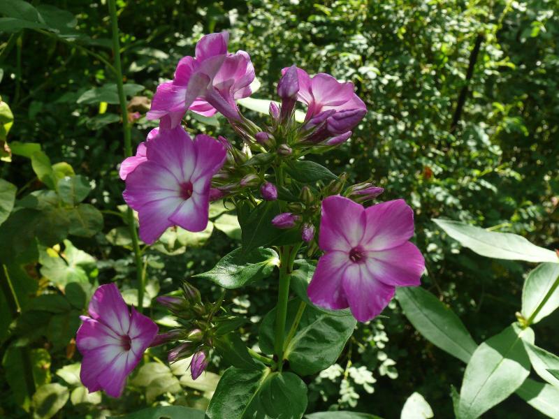An Phloxen habe ich fast nur Sämlinge. Vor vielen Jahren habe ich von Freunden einige wenige Phloxe aus deren Garten bekommen. Nach dem Abblühen habe ich – aus Unkenntnis - nicht rechtzeitig zurückgeschnitten. Folge: Eine große Zahl von Sämlingen, nicht zielgerichtet und geplant, sondern spontan, so wie die Insekten eben ihren Weg genommen haben. Obwohl ich inzwischen weiß, dass ein „ordentlicher“ Gärtner die Blütenstände rechtzeitig entfernt, mache ich das immer noch nicht ausreichend sorgfältig – und die Ergebnisse gefallen mir – aus unterschiedlichen Gründen - oft recht gut. Dieser Sämling ist z.B. recht hochwachsend; die längsten Stängel erreichen 135 cm.
