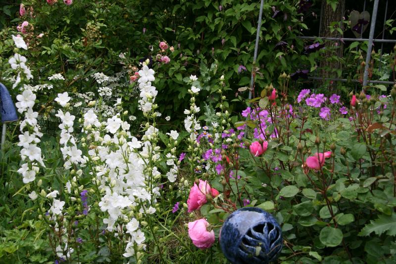 Dies Malve hat sich letztes Jahr von selber eingefunden.Äußerst blühwillig, leider auch extrem anfällig für Rost. Die großen Blätter habe ich schon alle entfernt.Gehe ich recht in der Annahme, das es sich um Malva sylvestris ssp. mauritiana handelt?