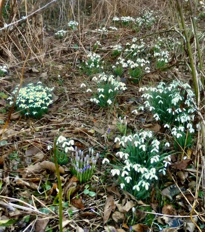 und aus dem Wiesengarten. Überwältigende Fülle an Schneeglöckchen. Übersichtsbilder spare ich mir.