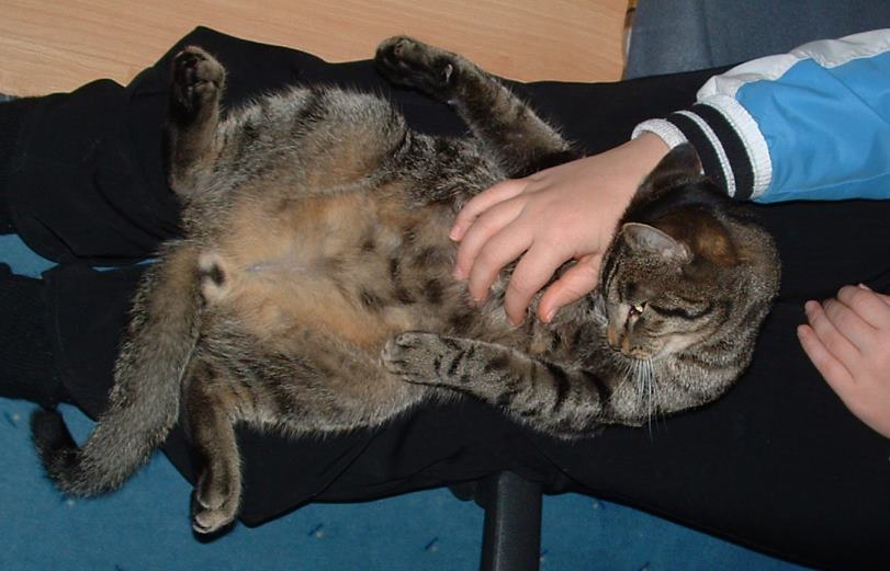 Stümmt. ;DAber wir genießen es auch, so einen weichen Bäuchi zu streicheln.Es ist nur schade, dass Minke da nicht so drauf steht. Dann hätten wir jeder ´nen Kater zum kuscheln. Der mag es lieber vornehm. Kopf und Wangen leicht mit den Fingerspitzen kraulen und streicheln nur vom Kopf bis zum Schwanz. Da ist nix mit rubbeln.
