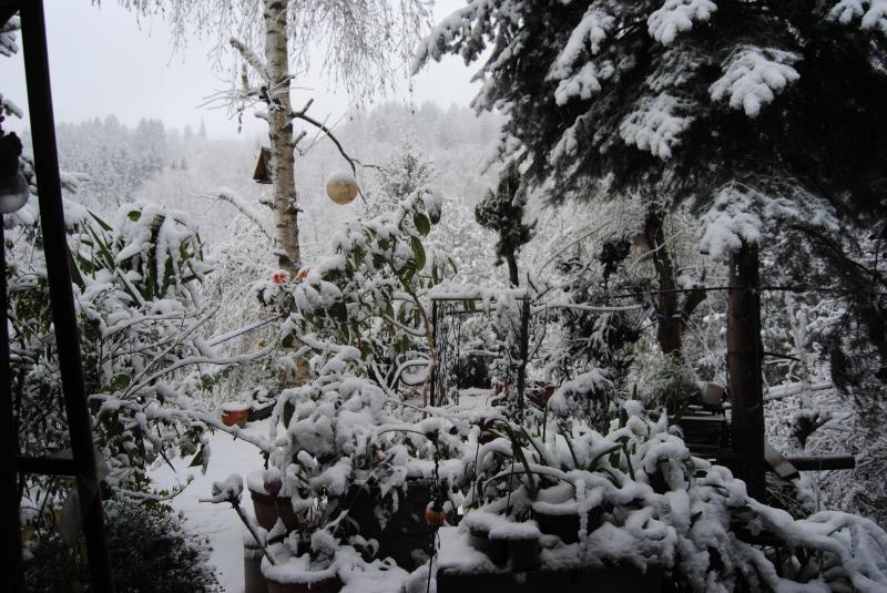 Den trockenen und halbwegs milden Nachmittag habe ich gestern genutzt und alle meine empfindlichen Topfpflanzen ins Stiegenhaus gestellt - Mittwoch oder Donnerstag kommt vermutlich der erste Frost und dann gleich -5 Grad. ::) Heute soll es den ganzen Tag regnen, morgen schneien.